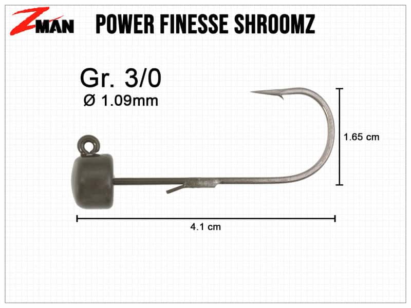 De Zman Power Finesse ShroomZ Jigheads zijn speciaal ontworpen voor het vissen met de Ned Rig. Dankzij het lichte gewicht en de platte kop gaat de shad perfect overeind staan. De Power Finesse ShroomZ Jigheads zijn voorzien van een Heavy Duty 3/0 haak, perfect voor groter aas.